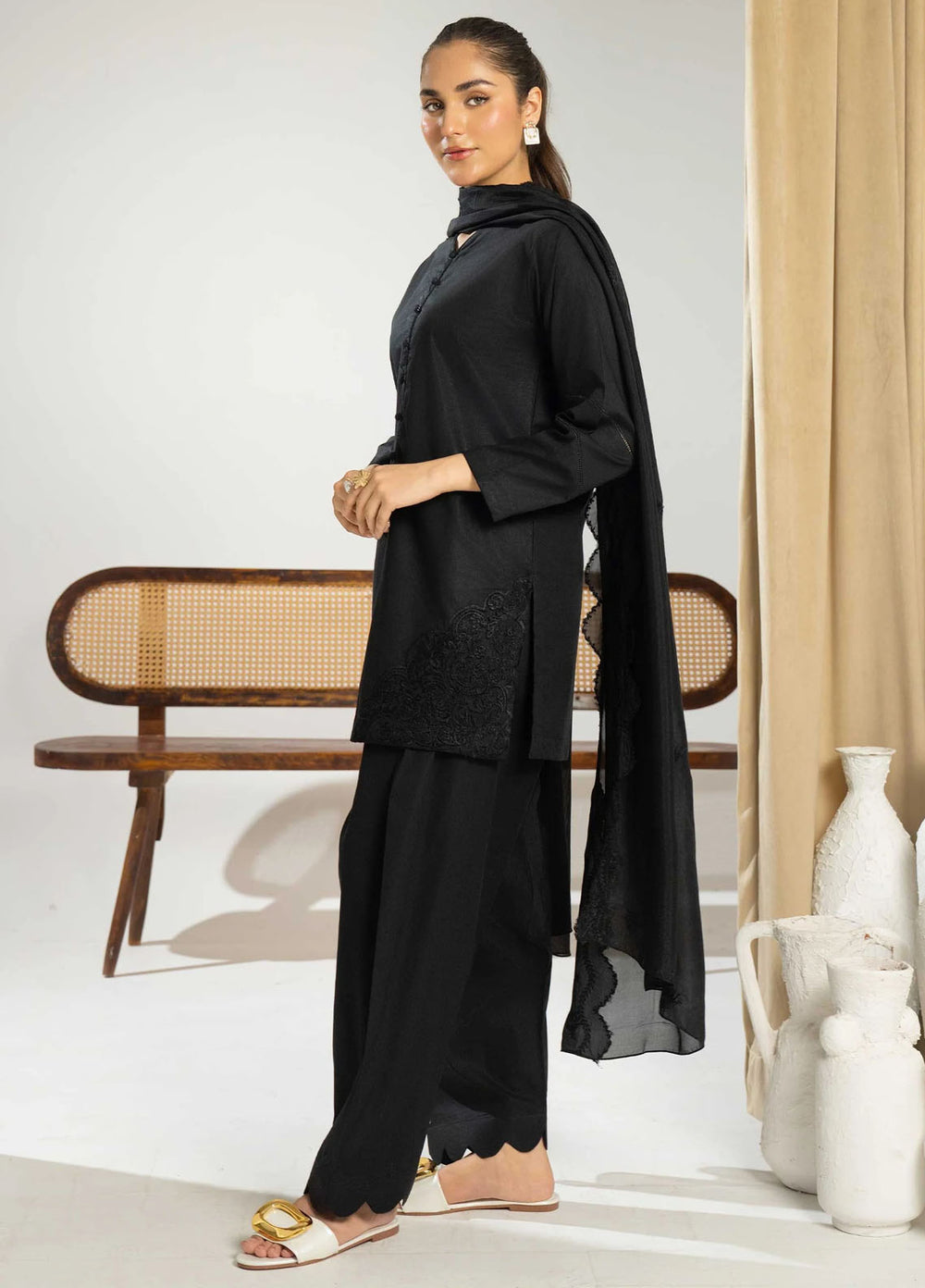 Who does not love Black? You would be a rare case if you didn't. A color that depicts mystery, power, elegance, and sophistication. Recognizing the beauty of black and the need for black clothing by its lovers, Mannat Clothing’s black collection was a hit. The collection offers 5 distinctive designs, each having a unique blend of embroidery and different fabrics such as lawn, chikan kari, cotton net, and chiffon.