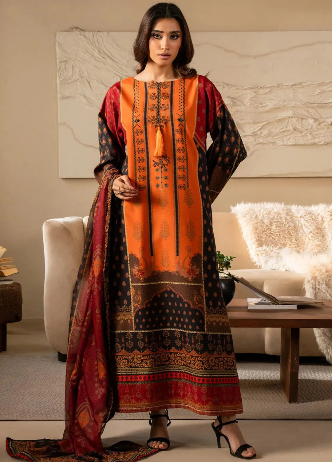 Maryam and Maria are well known about the needs of women. This is a dream collection for every girl to wear in festive occasions. Ladies like to wear dark and bright shades in weddings, and they naturally feel warm in dark gloom because they observe heat in large amounts, so it is also suitable to wear it in the winter season. The dress cuts are eastern in this collection, and then its self-printed and hand-worked decoration is done with western styles. Other than this, Sanaulla Store also have wide range of Lawn Suits