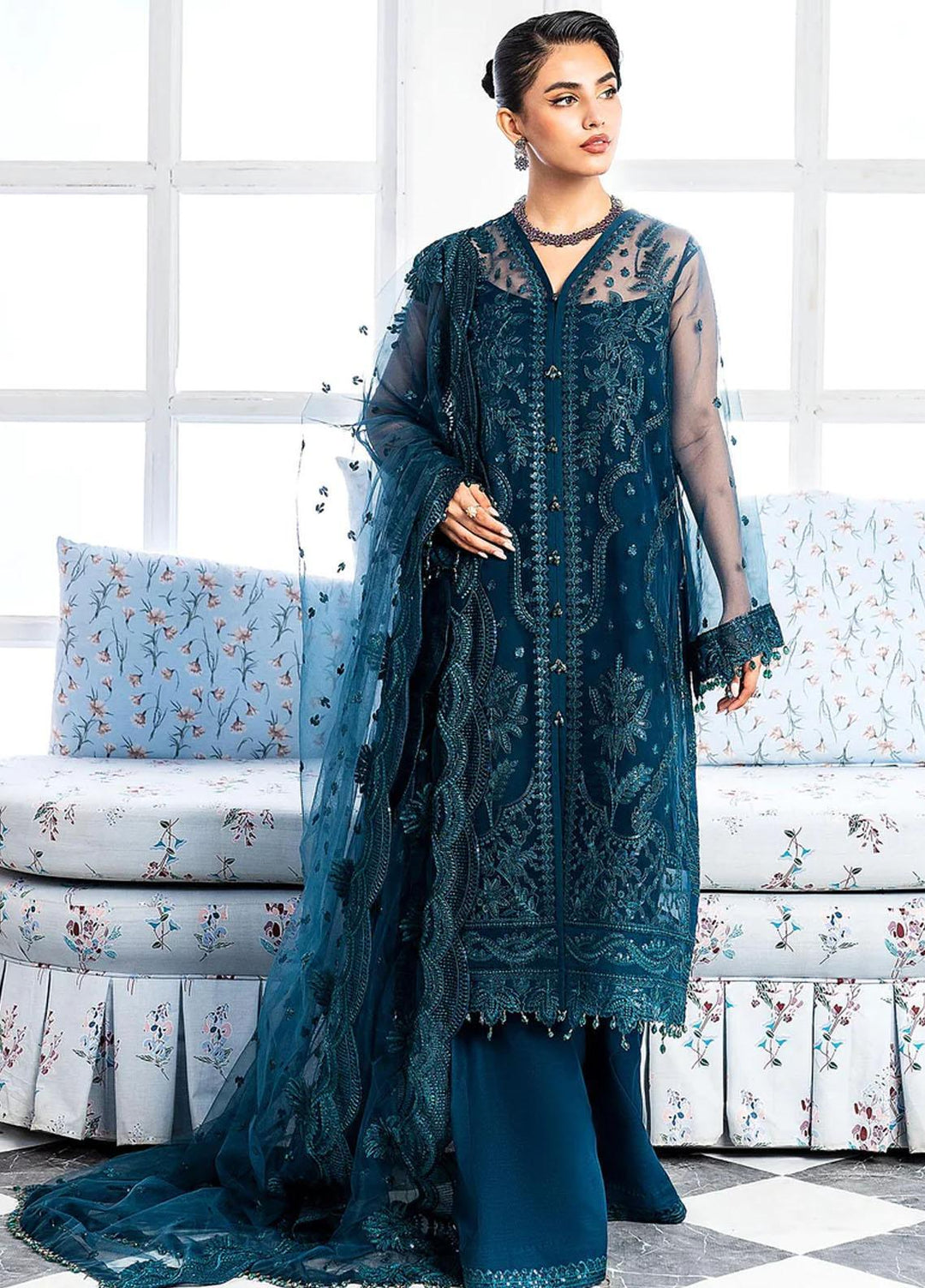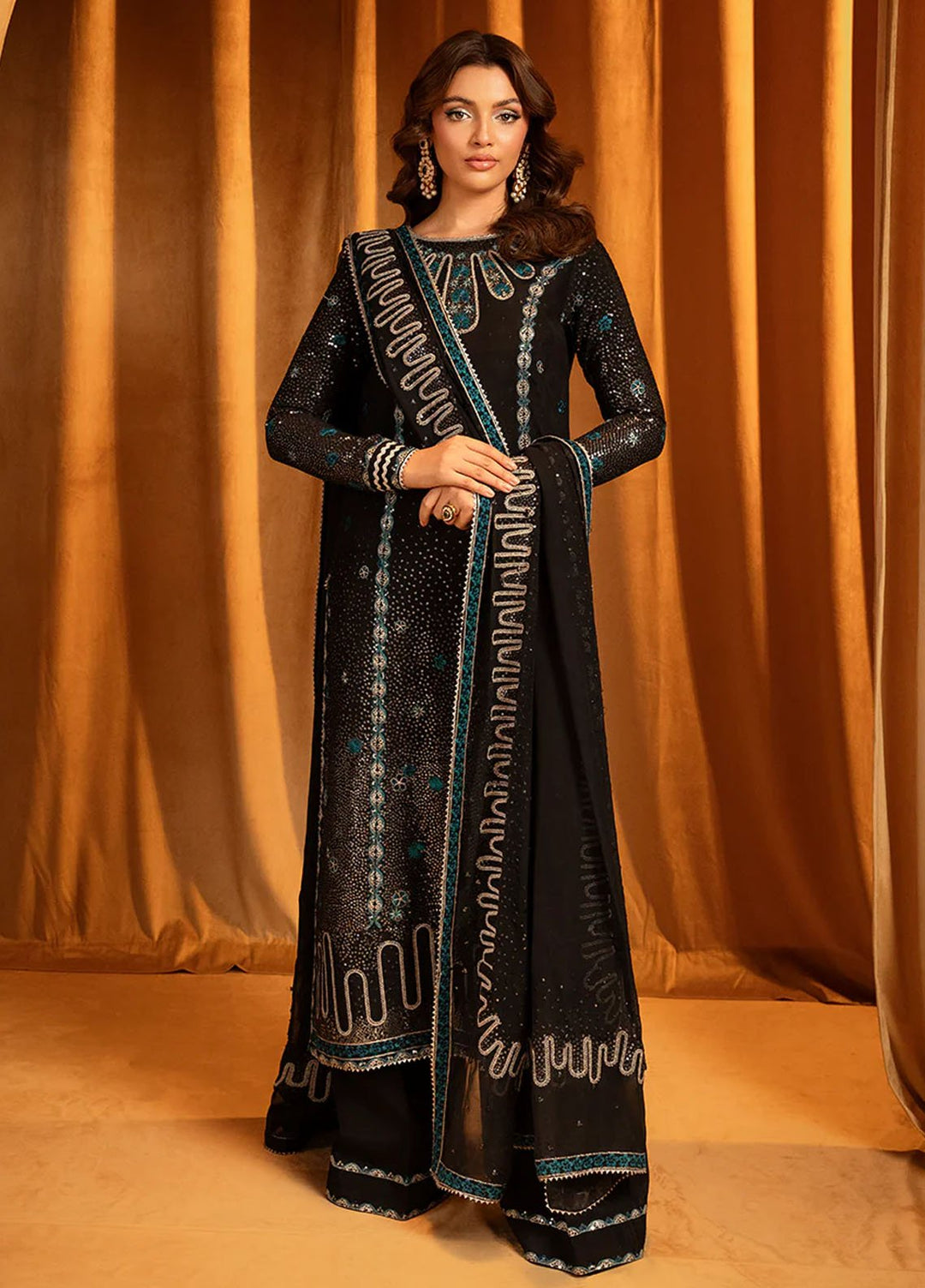 Chiffon is something women love to be wrapped in. Especially the women of Pakistan, as to the reason why chiffon looks absolutely beautiful crafted in traditional ethnic fashion. Ashna luxury chiffon collection featured 4 piece unstitched dresses having  hand work and rich embellishments all over giving the dress a real opulent luxurious look. The suit comes with raw silk undershirts paired with an embroidered chiffon dupatta and a cotton silk trouser. A total of six designs this collection had to offer, each being unique in its artwork and color palette.