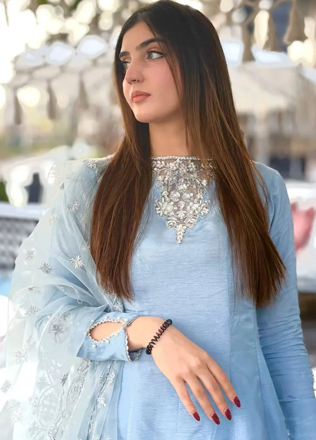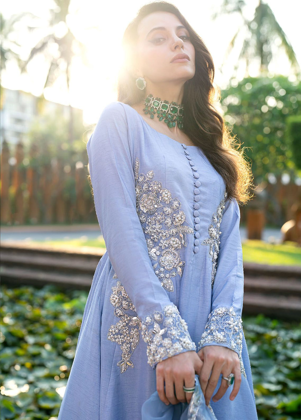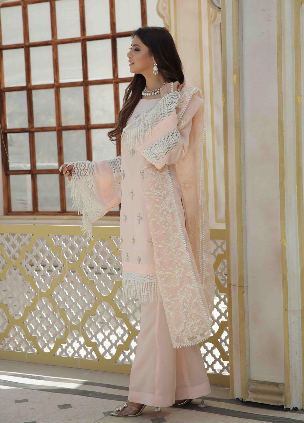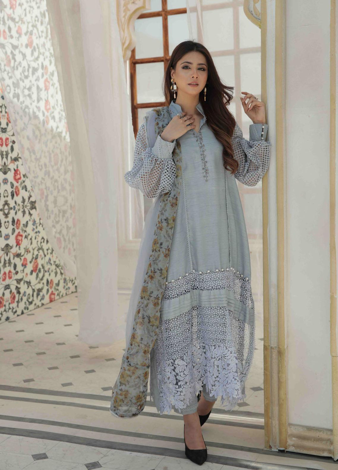 Mehak Yaqoob, keeping up with fashion and with the current seasons. Mehak Yaqoob brings “In the Bloom” spring/summer collection. An evenly beautiful collection, that inspires fashion with its utmost premium designs that portray sheer delicacy of women’s fashion in Pakistan. In the Bloom, comes with six awe inspiring designs, a real treat for this spring/summer season. Exploring the designs, you can find light pastel shades giving the outfits a summery look. Let’s introduce this booming story with a saree. Etoile, an organza printed beautiful saree with satin detailing paired with hand embellished raw silk blouse with the puffy shoulders. Than the sharara, “Anais” epitome of elegance. Coming with a sharara pant it comes with an alluring short shirt paired with a blooming floral organza dupatta. Lavende. The classic 3-pc stitched suit with modern cuts infused handcrafted work of pearl and crystals paired with silver foil printed dupatta with cigarette pants.