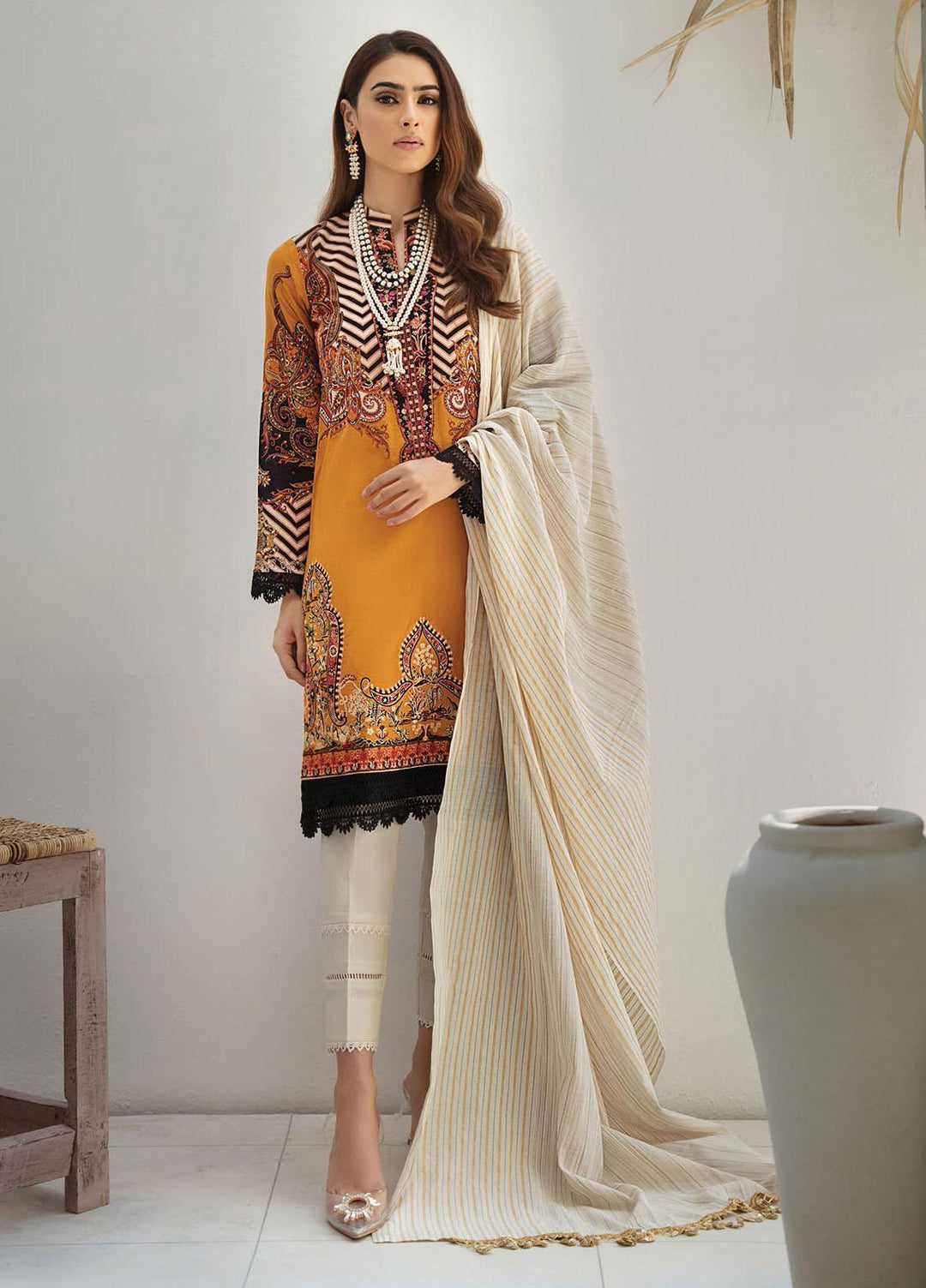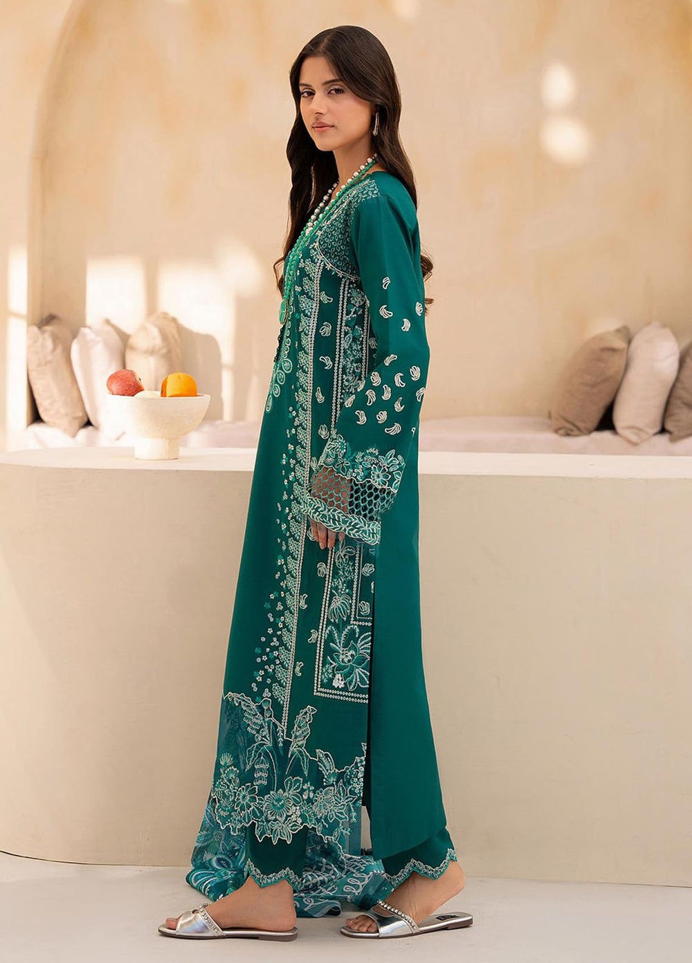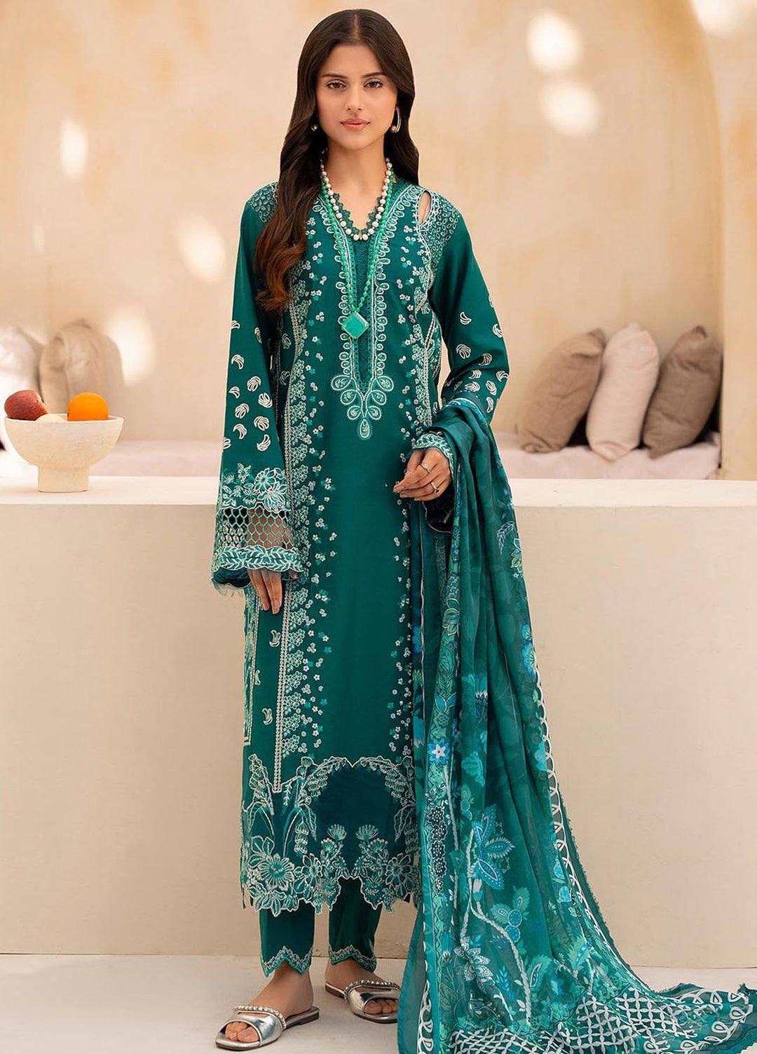 You want to wear lavish dresses this winter? RajBari premium linen collection is here that is providing you newest style and eye catchy hues, this is 3 piece stitched collection every single dress in design in a fantastic technique of embroidery work with latest style and patterns, shirts are design with gorgeous embroidery and luminous network of threads embellished on front, neckline and daman, pashmina shawls are also furnished with beautiful prints and amazing embroidery which will protect you in chilly winter season.